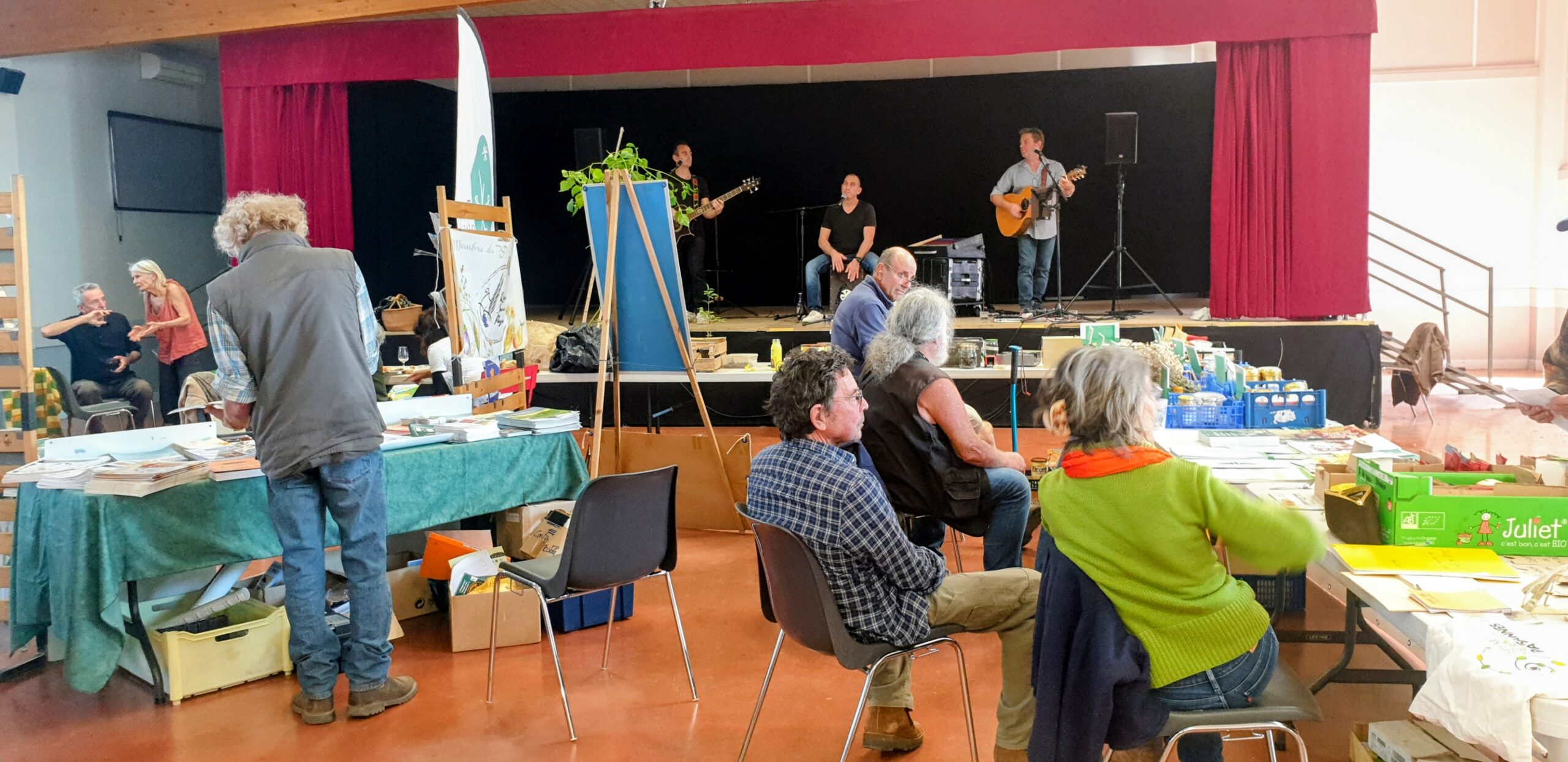 Les visiteurs ont déambulé devant plusieurs stands associatifs (Semeurs du Lodévois-Larzac, Nature et Progrès, Faucheurs volontaires, Le Parc régional du haut Languedoc, la Confédération paysanne) venus là pour promouvoir l’agriculture à base de semences paysannes comme la cèbe de Tarassac, sans pesticides et sans OGM montrant qu’on peut faire vivre « un pays », cultiver en quantité et se nourrir de produits bons pour notre santé et pour celle de nos voisins autres qu’humain dont nous dépendons tous.