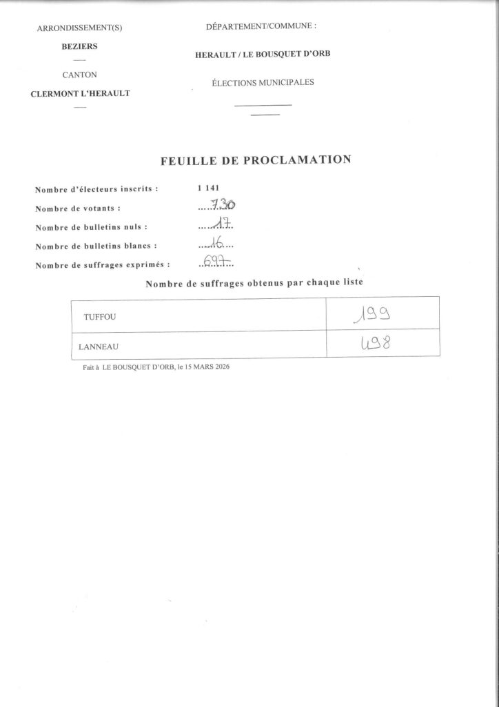 Suite à la séance du 27 mai 2025, l’équipe municipale se compose comme suit :